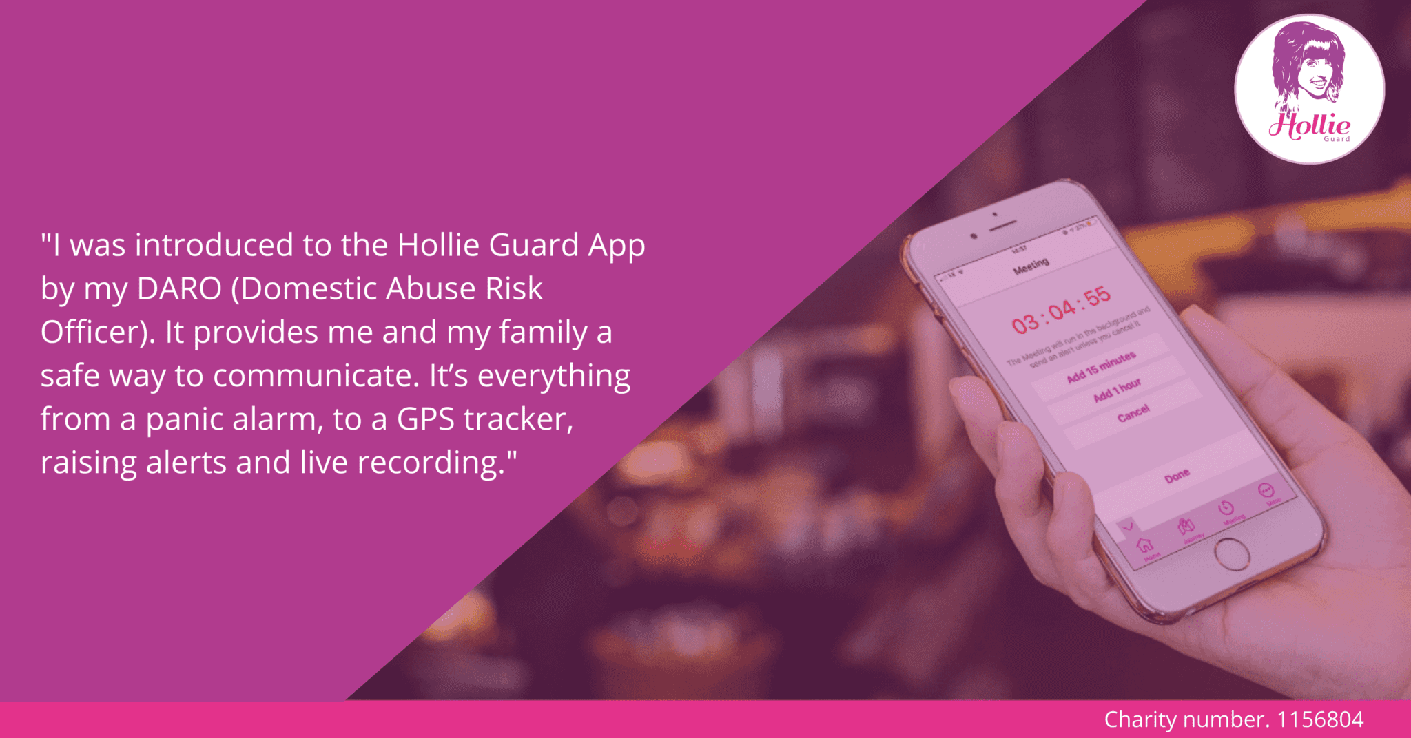 Hollie Guard has the features to be able to benefit and provide protection and peace of mind to many other use cases as well as my specific situation. Whether it’s a regular journey you take, an innocent night out, or someone living in an established, abusive environment.