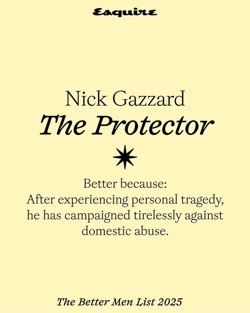 The Hollie Gazzard Trust is delighted to announce that our founder, Nick Gazzard OBE, has been recognised by Esquire UK on their inaugural Better Men List 2025.
