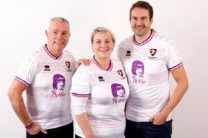 The unique one-off kit is all white with a purple and pink trim to reflect the striking brand colours of the Trust. Inside the neck of the shirt is one of Hollie’s favourite quotes: Smile often, think big. It will form the theme of our celebration on the matchday.