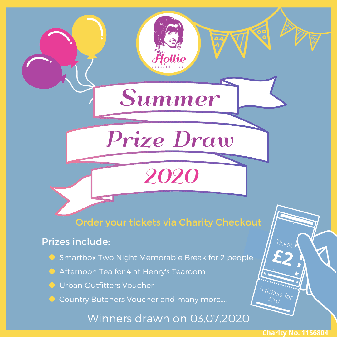 The Summer Prize Draw is back! With the aim to raise vital funds for the Hollie Gazzard Trust during these unprecedented times. We would like to thank all the businesses and individuals that have dontated these amazing prizes, we are so grateful for your kindness and generosity.